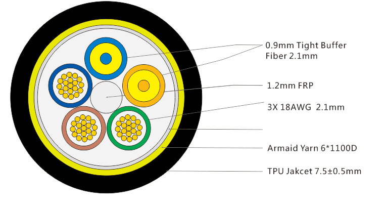 注:光纜的外護套材料、顏色及印字信息可根據客戶的要求定制